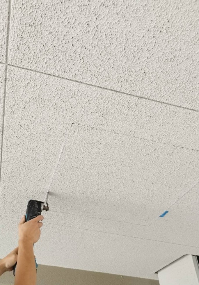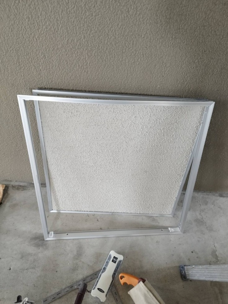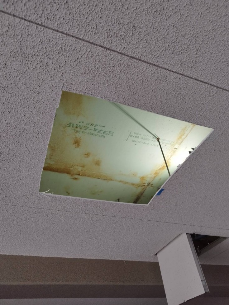 今回はマンション1階共用部の天井に点検口を新設しました。